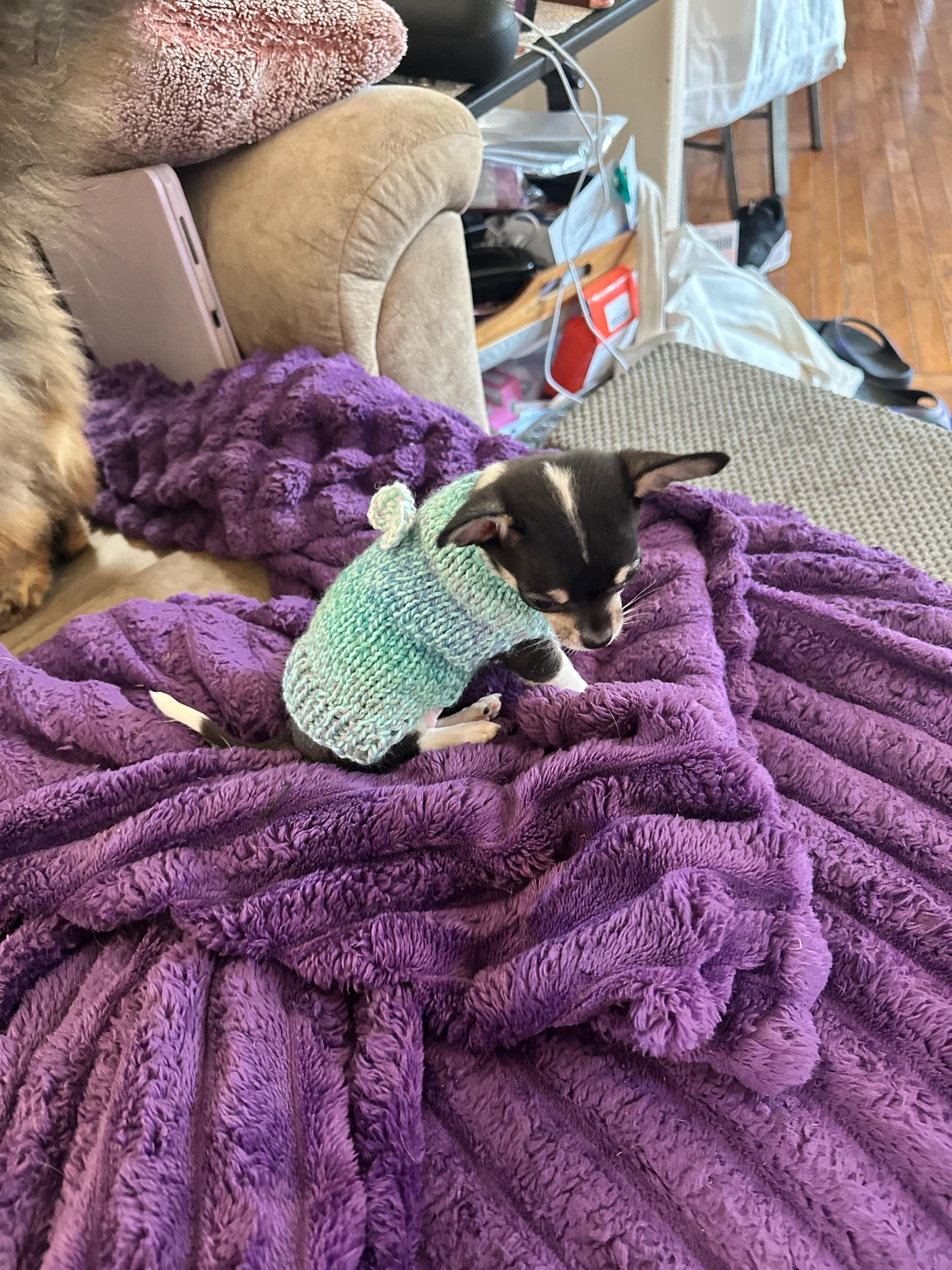This little sweater is PERFECT for my new Chihuahua puppy weighing only 1.6 lbs. The quality is fantastic, and she looks sooo cute in it! Thank you so much!