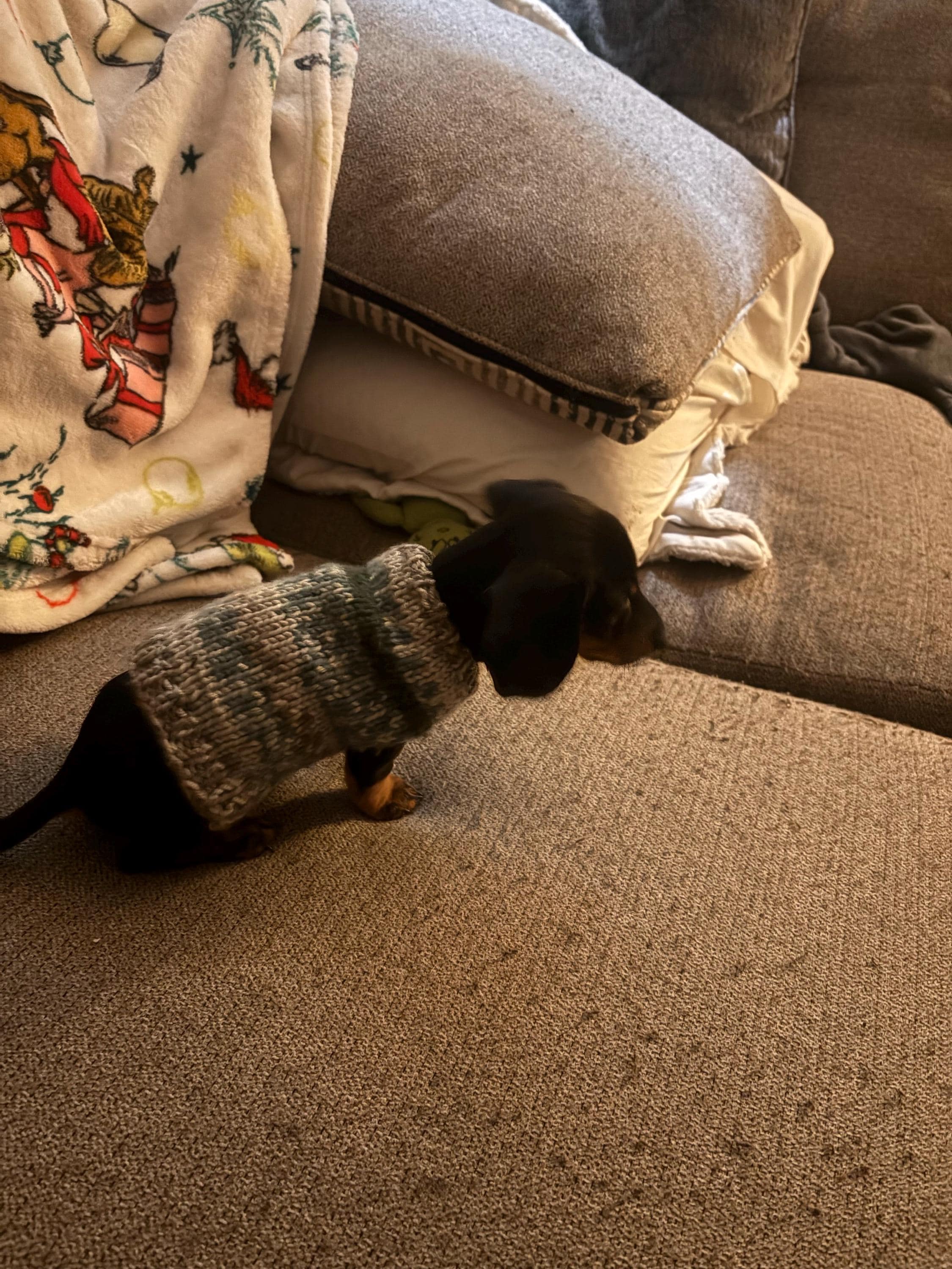 All sweater listings include measurements and weight suggestions. Most sweaters are made to fit an average puppy build. If your puppy is very skinny, but long, please contact me before ordering.