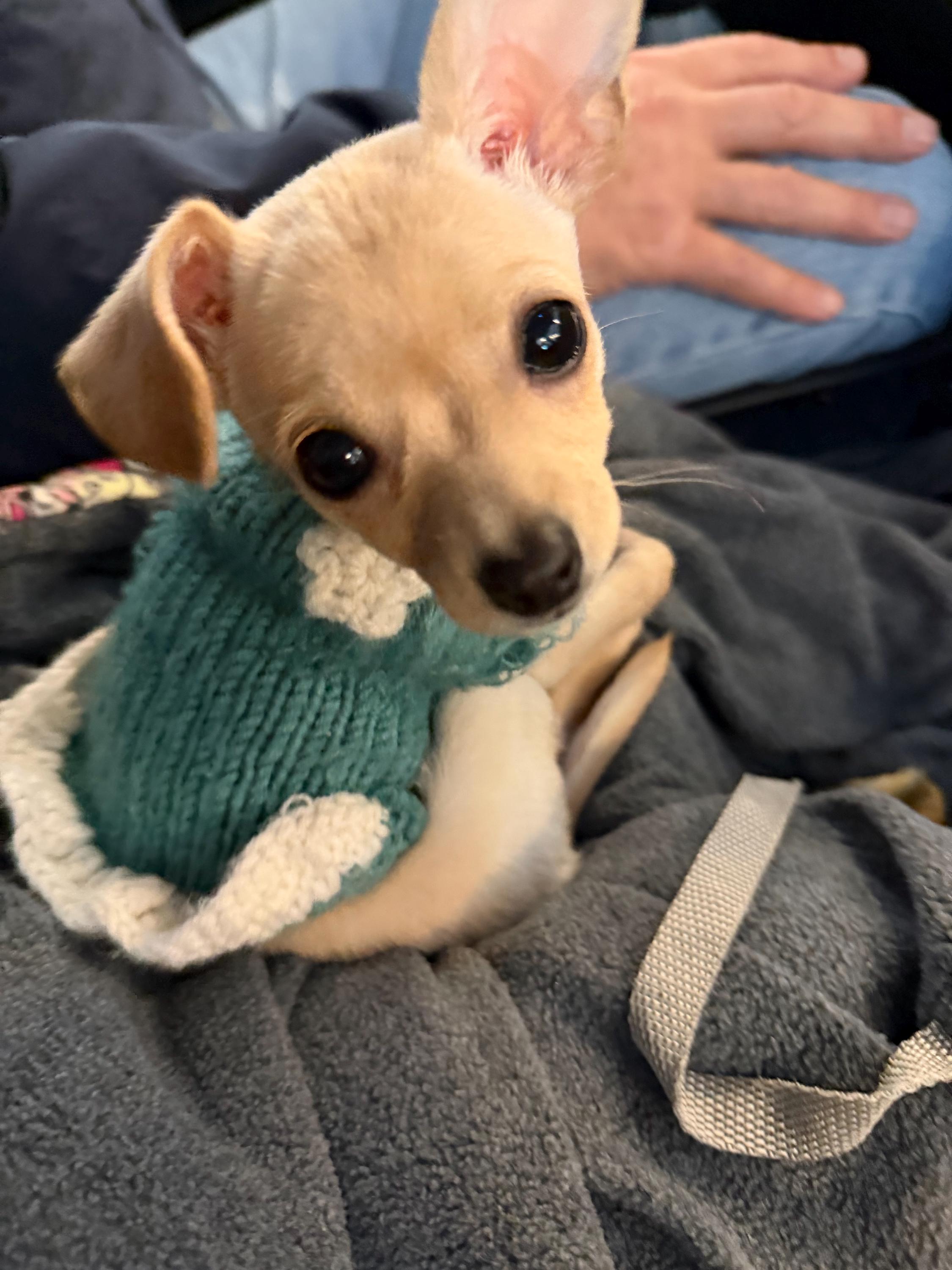 We got a tiny new puppy in the middle of winter! Aside from blankets and knit hats (which we carried her in), we could not find a sweater or anything that we could have her wear to keep her consistently warm. Then we found this vendor on Etsy - success!! The tiny sweater we ordered fit!! Our pup is 1.7 lbs and I ordered the smallest sweater (for 1lb) and another (for 1.5-2lb)…our Bella fit into the 1lb puppy sweater just perfectly. Easy to put on - perfectly sweet!