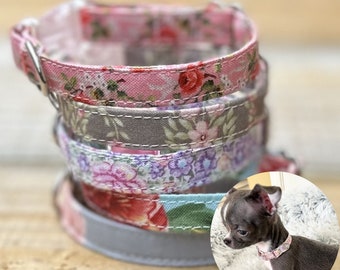 Dainty Rose Teacup Puppy Collar - Tiny 4.5" - 6.5" for XXXS Pups, Litter ID